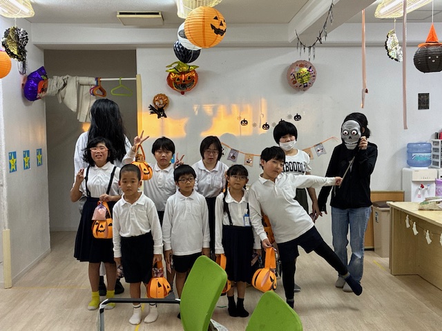 10月30日にハロウィンパーティを行いました。自分たちで作ったお菓子入れを持ってお菓子をもらいに行ったり、お化け屋敷を行いました。ドキドキしながらお化け屋敷に入り、楽しくハロウィンを楽しむ姿が見られました。